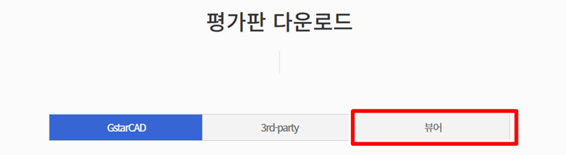 2. 평가판 내려받기 화면으로 이동하면 여러 항목이 보일 거예요. 기본으로 선택된 GstarCAD 옆에 있는 '뷰어' 항목을 찾아주세요. DWG 파일을 보기 위한 프로그램을 받으려면 이쪽으로 들어가야 합니다.