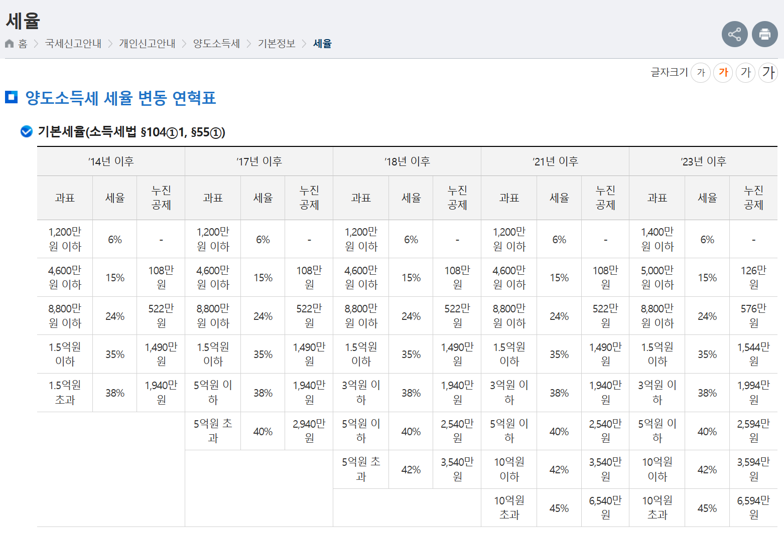 주택 아파트 양도세율표