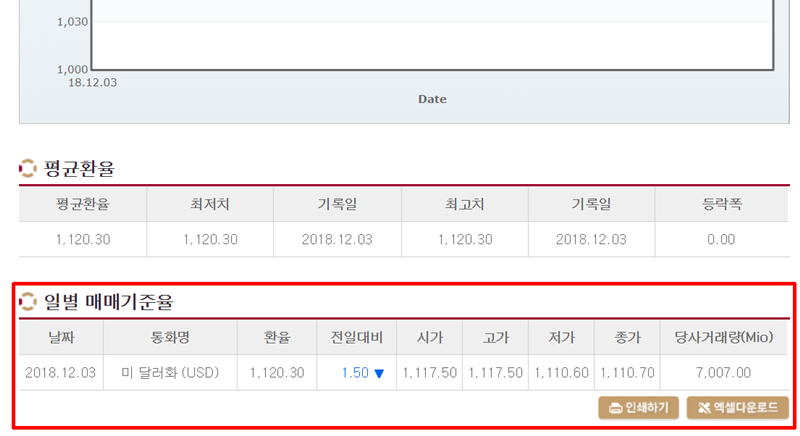 일자별 과거 환율조회