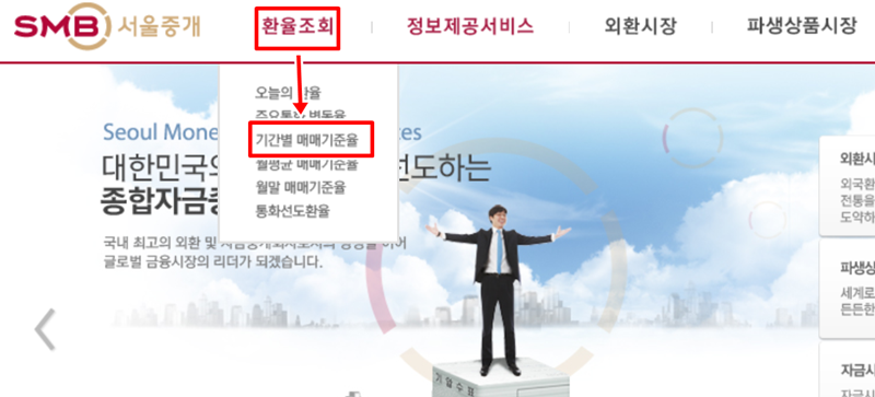 5. 은행 사이트 외에 금융 정보를 전문적으로 다루는 곳을 통해서도 확인이 가능합니다. 이러한 웹사이트에 접속하여 상단 메뉴 중 '환율조회'를 찾고, 그 아래 나타나는 '기간별 매매기준율'과 같은 세부 항목으로 이동하면 날짜별 환율을 조회할 수 있는 페이지로 연결됩니다.