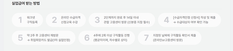 4. 수급자격을 인정받은 후 약 2주 후 센터를 다시 방문해 취업희망카드를 발급받습니다. 이후 4주에 두 번 이상의 구직활동을 진행하며 지정된 날짜에 구직활동 확인서를 제출해야 실업급여를 받는 과정이 마무리됩니다.
