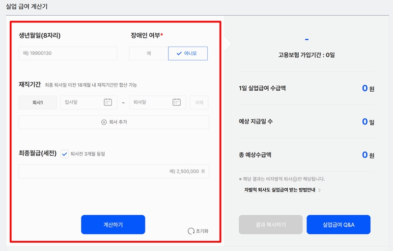 5. 본 계산기는 사용자가 입력한 정보만을 바탕으로 계산된 예상 결과입니다. 실제 수급액과 지급일 수는 다를 수 있으므로 정확한 내용은 거주지 관할 센터나 관련 홈페이지에서 확인해야 합니다.