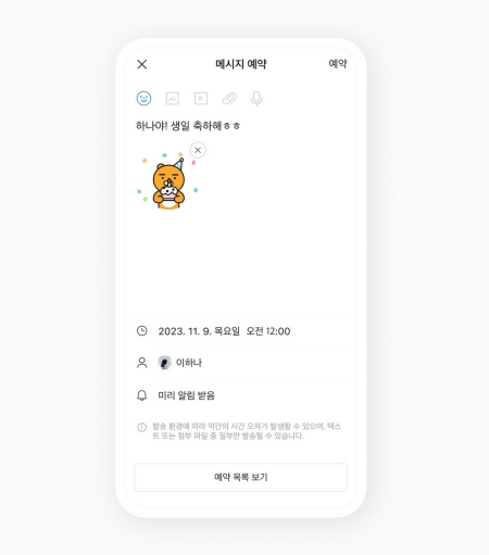 중요한 약속이나 기념일을 잊지 않고 원하는 시간에 맞춰 메시지를 보낼 수 있도록 도와주는 기능입니다. 이 기능을 활용하면 바쁜 와중에도 소중한 사람들을 챙기고, 업무의 효율성도 높일 수 있어 매우 실용적입니다.