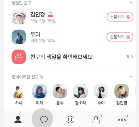 1. 친구 목록에서 생일인 친구를 확인하고 축하 메시지를 보내기 위해 해당 친구와의 대화창으로 들어가 주세요. 꼭 생일이 아니더라도, 메시지를 보내고 싶은 상대방과의 대화창을 열면 준비는 끝납니다.