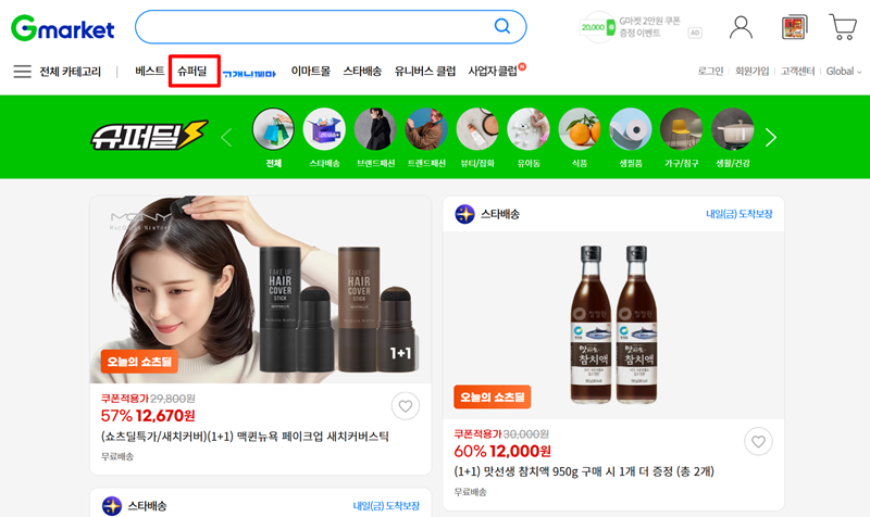 4. '슈퍼딜'은 이름처럼 아주 특별한 가격의 상품들을 만나볼 수 있는 공간이에요. 매일 새로운 상품들이 올라오기 때문에 자주 방문하면 생각지도 못했던 좋은 물건을 저렴하게 구매할 기회를 잡을 수 있죠. 놓치기 아까운 상품들이 가득하답니다.