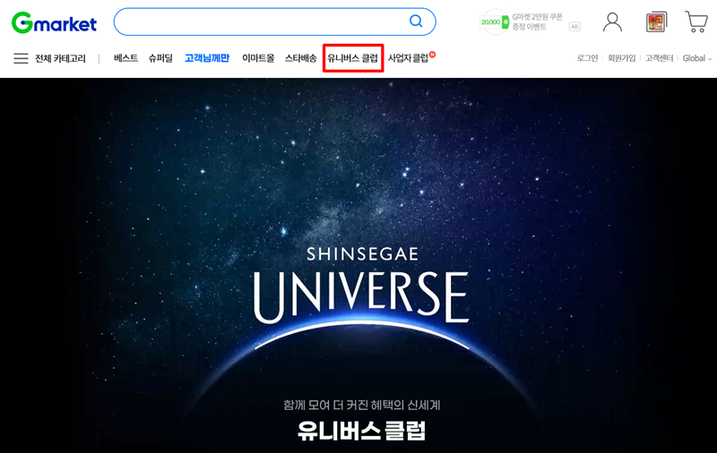 7. '유니버스 클럽'은 G마켓을 더욱 알차게 이용할 수 있는 멤버십 프로그램이에요. 한번의 가입으로 G마켓뿐만 아니라 신세계 그룹의 여러 쇼핑 공간에서 함께 더 커진 혜택을 누릴 수 있어 많은 이용자들의 관심을 받고 있습니다.