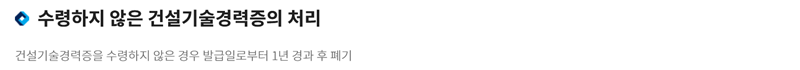 8. 수첩 형태로 발급되는 건설기술경력증 역시 신청 후 찾아가지 않으면 폐기됩니다. 이 경우는 보관 기간이 더 길어서, 발급일로부터 1년이 지나면 안전하게 폐기 처리되므로 발급받았다면 잊지 말고 챙겨두는 것이 좋습니다.