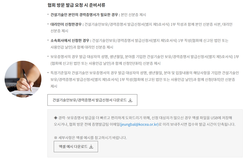건설기술인협회 경력확인서 발급
