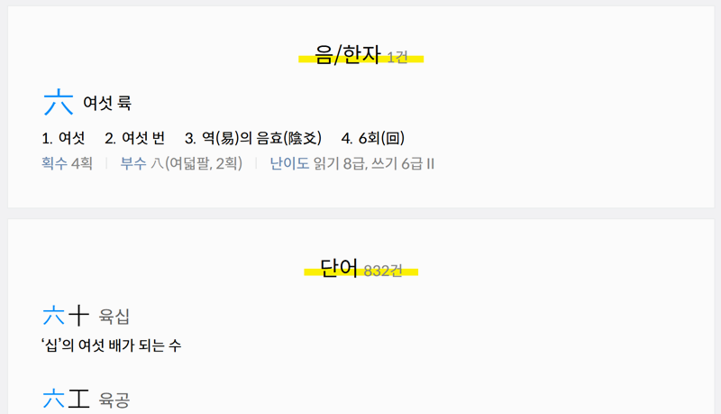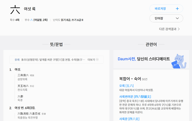 4. 찾은 한자를 검색하면 음과 한자, 관련 단어를 자세히 확인할 수 있습니다. 여섯 륙의 음과 뜻, 관련 단어를 살펴볼 수 있었는데, 이렇게 한자의 의미를 좀 더 깊이 알 수 있어 매우 유익했습니다. 관련 단어들을 함께 확인할 수 있어 한자를 제대로 이해하는 데 큰 도움이 됩니다.