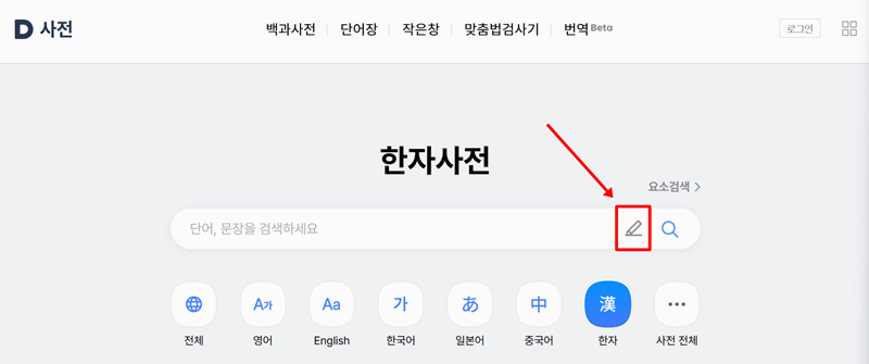 한자의 모양을 그리기만 하면 해당 한자를 자동으로 찾아주는 기능입니다. 예를 들어 한자의 의미나 정확한 모양이 기억나지 않을 때 우리가 알던 한자의 형상만 그리면 시스템이 그 한자에 맞는 결과를 바로 보여줍니다. 이 기능은 한자를 정확히 알고 있지 않아도 그 모양을 떠올리기만 하면 쉽게 찾을 수 있어 정말 유용합니다. 시간이 부족할 때 빠르게 필요한 정보를 얻을 수 있는 방법입니다. 다음 한자 그려서 찾기는 아래의 다음 어학사전에서 이용 할 수 있습니다.