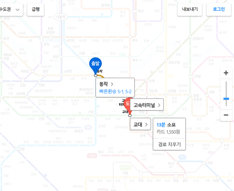 지하철 노선도 경로검색