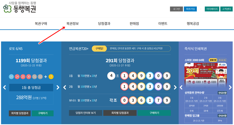 1. 동행복권 홈페이지에서 '복권정보' 항목을 선택하면 로또를 포함한 다양한 복권에 대한 상세 내용을 살펴볼 수 있습니다.
