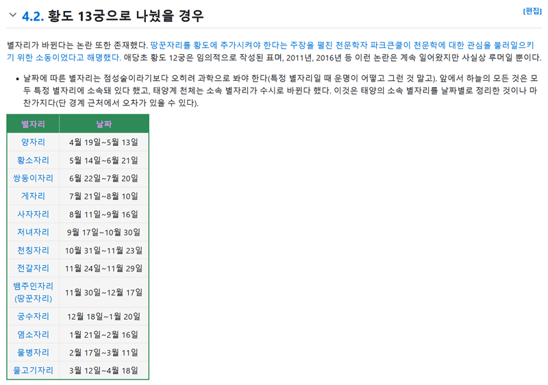 2. 최근에는 기존의 12개 별자리에 '뱀주인자리'가 추가된 황도 13궁이라는 새로운 기준이 알려지기도 했습니다. 천문학적인 관측을 바탕으로 한 이 기준에 따르면 별자리들의 날짜가 기존과 조금씩 달라지므로, 새로운 기준으로 자신의 별자리를 확인해보는 것도 흥미로운 경험이 될 수 있습니다.