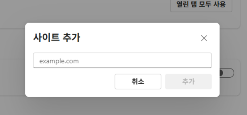 3. 나타난 작은 창의 주소 입력란에 원하는 시작페이지의 주소를 입력하고 '추가'를 눌러주면 간단하게 변경할 수 있습니다.