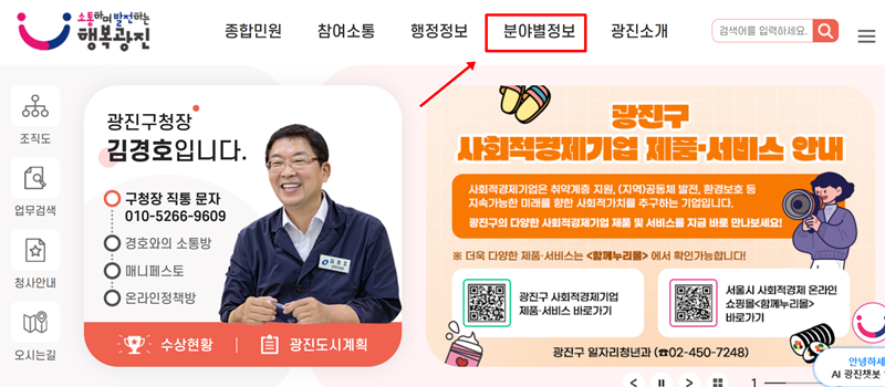 1. 먼저 거주하는 지역의 구청이나 시청 홈페이지에 접속한 뒤, 전체 메뉴에서 '분야별 정보'와 같은 생활 정보 관련 항목을 찾아보세요. 이곳에서 우리 생활과 밀접한 다양한 소식들을 접할 수 있습니다.