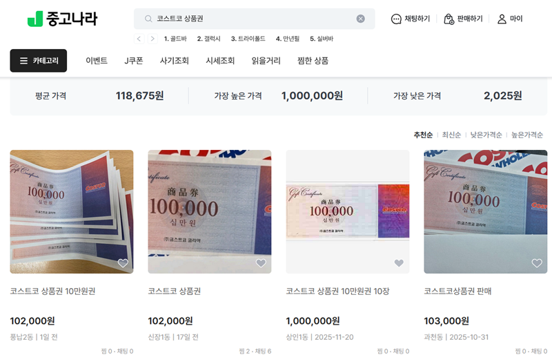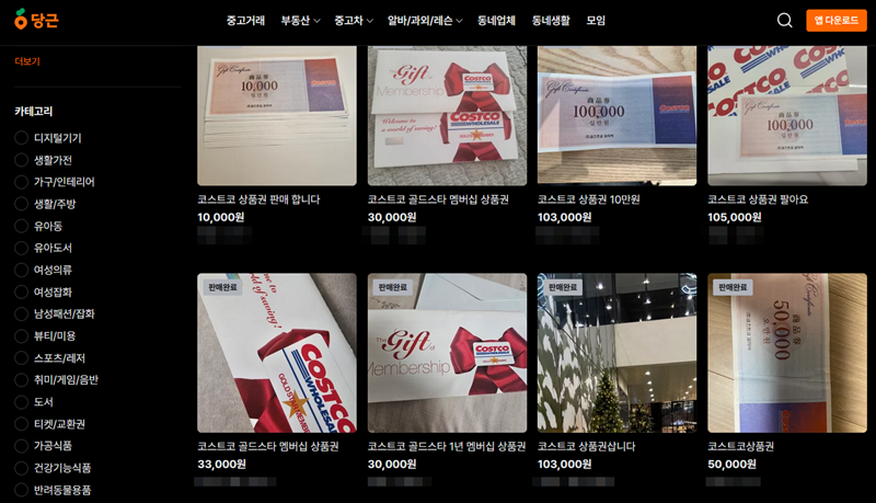 4. 중고나라와 같은 온라인 중고 장터에서도 코스트코 상품권을 심심치 않게 찾아볼 수 있습니다. 개인 간의 거래를 통해 이루어지기 때문에, 때로는 정가보다 조금 더 저렴하게 구매할 기회가 생기기도 합니다.