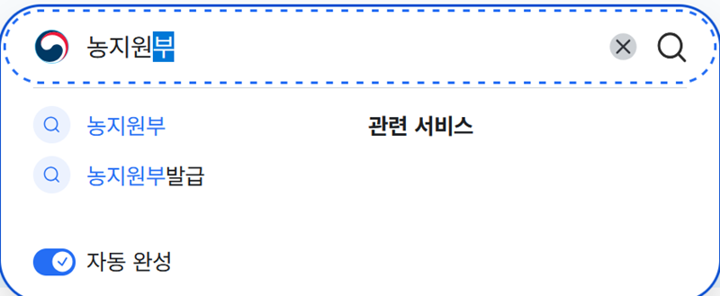 2. 검색창에 '농지원부' 또는 '농지대장'을 입력하면 관련된 민원 서비스들이 자동으로 나타납니다. 여기서 본인이 이용하고자 하는 서비스를 선택하여 다음 단계로 넘어갈 수 있습니다.