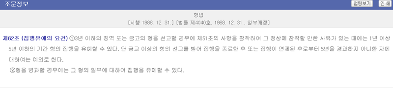 4. 형법 제62조에서는 집행유예의 요건을 구체적으로 명시하고 있습니다. 3년 이하의 징역이나 금고형을 선고할 경우, 정상에 참작할 만한 사유가 있을 때 1년 이상 5년 이하의 기간 동안 형의 집행을 유예할 수 있도록 하여 다시 한번 사회에 적응할 기회를 주고 있습니다.