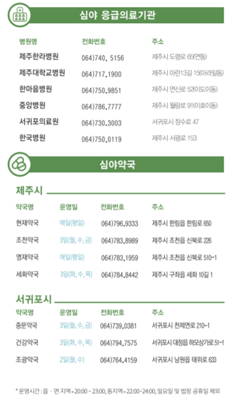 8. 심야 응급의료기관이나 약국 정보도 담겨 있어 예기치 못한 상황에 대비할 수 있습니다. 여행지에서 갑자기 아프거나 다쳤을 때 당황하지 않고 신속하게 대처하는 데 필요한 정보를 얻을 수 있습니다.