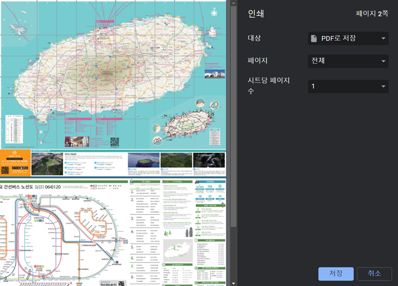 11. 인쇄 설정 화면에서는 전체 페이지를 출력하거나, 파일로 저장하여 휴대용 기기에 담아 다닐 수도 있습니다. 이렇게 하면 인터넷 연결 없이도 언제 어디서든 지도를 펼쳐볼 수 있어 편리합니다.