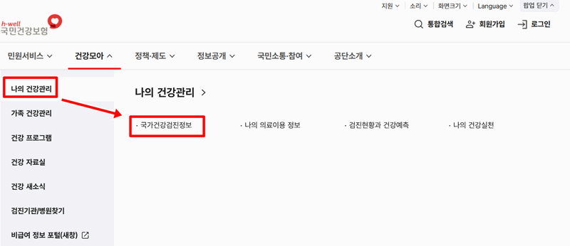 1. 해당 홈페이지에 들어가면 상단 메뉴 중에 건강모아 항목이 보여요. 이곳에서는 건강과 관련된 다양한 내용을 살펴볼 수 있고 짝수나 홀수 해에 해당하는 건강검진 대상자도 이 메뉴에서 확인할 수 있어요.