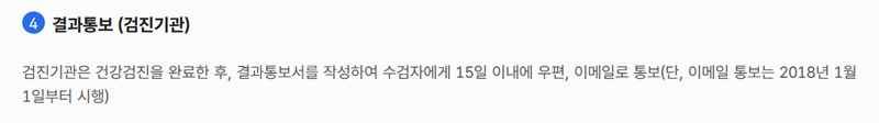 6. 검사를 마치면 결과는 검사받은 곳에서 알려줘요. 검사 후 15일 이내에 우편이나 이메일로 받아볼 수 있고 이메일 통보는 2018년부터 시작됐어요.
