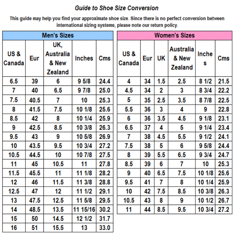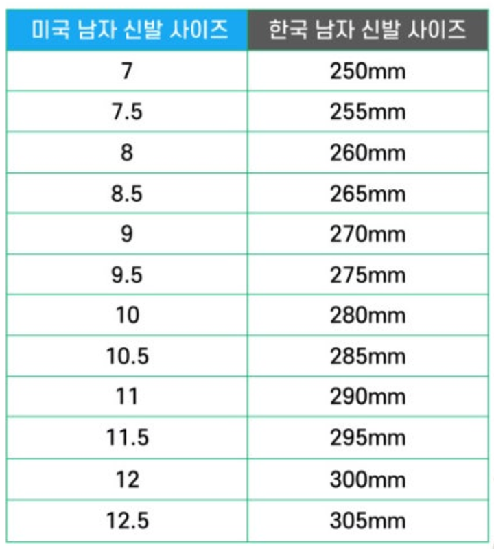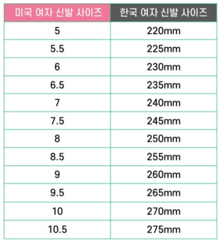 미국 신발 사이즈표 남자 여자