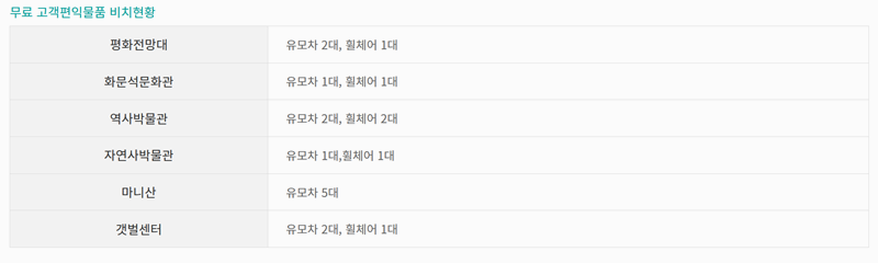 7. 편의를 위해 마니산과 평화전망대, 화문석문화관, 역사박물관, 자연사박물관 등 주요 시설에 유모차와 휠체어를 비치해두고 있습니다. 특히 마니산에는 유모차 5대가 준비돼 있어 아이와 함께 찾는 가족 단위 방문객에게 도움이 될 만합니다.