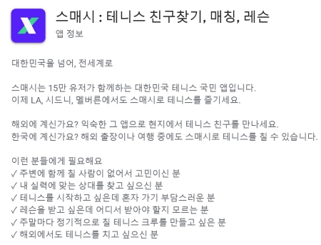 이제 '스매시' 앱 하나만 있으면 테니스 친구를 찾거나 함께 운동할 동호회를 알아보는 일이 훨씬 간편해질 거예요. 저도 이 앱을 통해 새로운 사람들과 만나 테니스를 치면서 실력도 늘고 즐거움도 배가 되었어요. 여러분도 망설이지 말고 한번 경험해 보세요. 코트 위에서 새로운 즐거움을 발견하게 될지도 모르니까요.