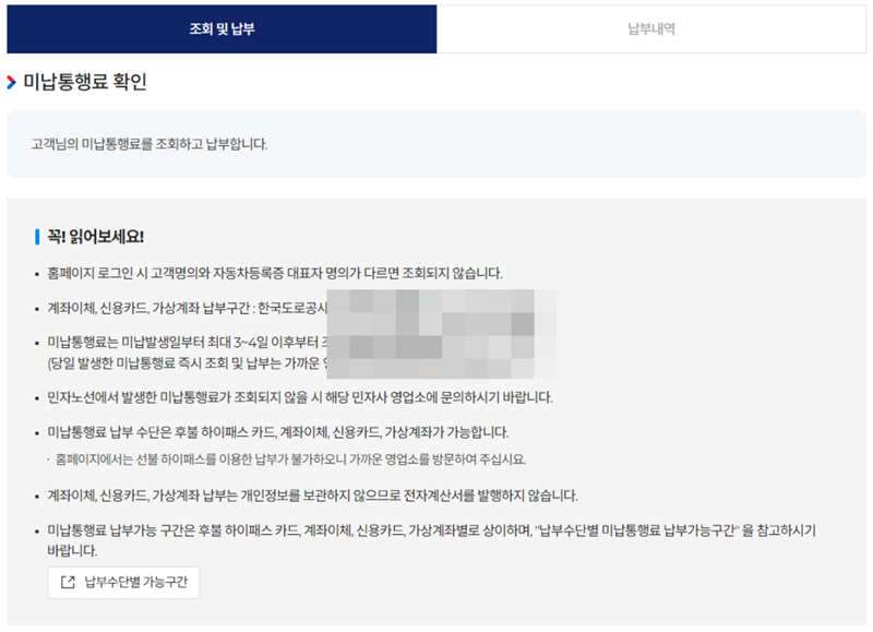 한국도로공사 미납요금조회