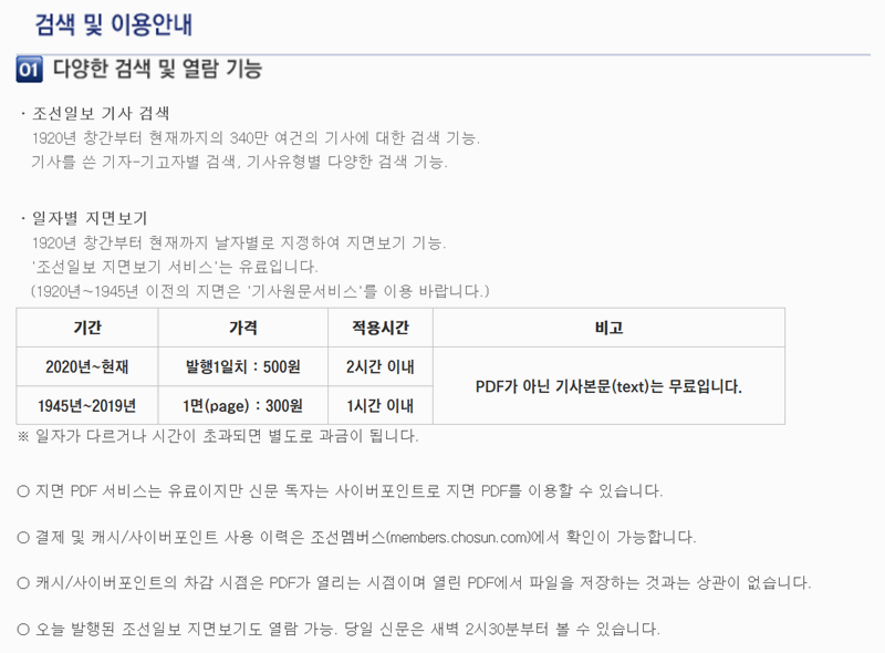 6. 지면 PDF 서비스는 유료로 운영되지만 정기 구독자는 별도 포인트로 해당 서비스를 이용할 수 있어 효율적입니다.