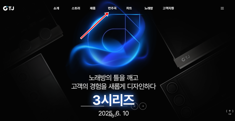 1. 상단 메뉴에서 '반주곡'에 마우스를 올리면 숨겨진 메뉴가 자동으로 나타나요. 이 과정을 통해 검색 메뉴에 빠르게 접근할 수 있어 처음 접하는 분들도 어렵지 않게 이용할 수 있습니다.