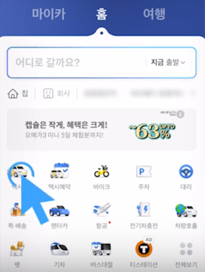 4. 메인 화면에는 여러 기능이 아이콘 형태로 정리돼 있으며 그중에서도 택시 호출은 눈에 띄는 위치에 있어서 누구나 쉽게 찾을 수 있도록 구성돼 있습니다.