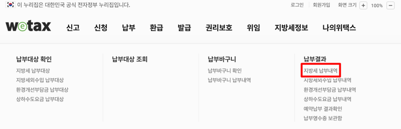 자동차세 납부내역 조회 확인
