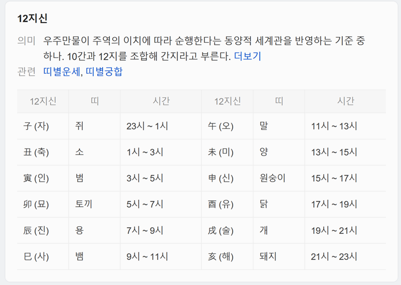 4. 12간지는 출생시간에 따라 정해지며, 띠와 연결된 운세 해석의 기준이 됩니다. 시간대별로 대응되는 띠가 정리되어 있어요.