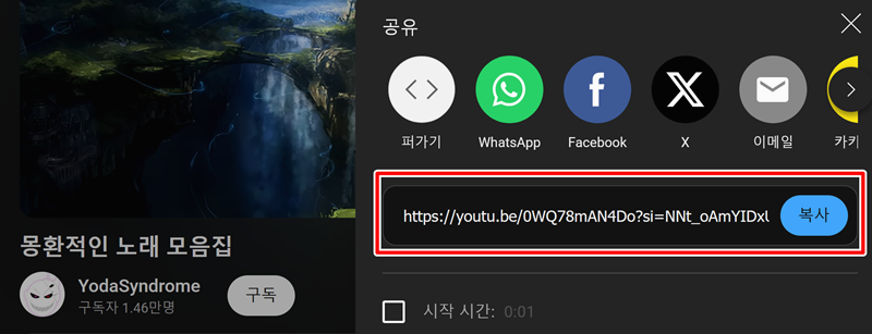 3. 영상 하단에 있는 공유를 누르면 주소가 나오는데, 이걸 복사해두면 준비는 끝이에요.