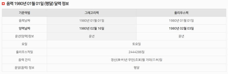 5. 입력한 양력 날짜에 따라 음력 날짜와 간지, 요일, 윤년 정보 등 다양한 내용이 상세하게 나와요. 그날의 성격까지 한눈에 확인할 수 있어요.