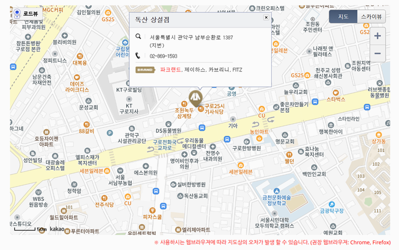 5. 선택한 매장의 정확한 주소와 연락처는 물론, 지도 위에 표시된 위치를 한눈에 볼 수 있어 찾아가기 전에 동선을 파악하기 좋습니다.